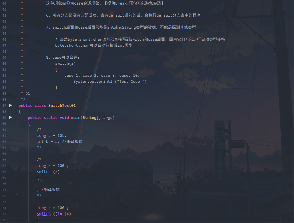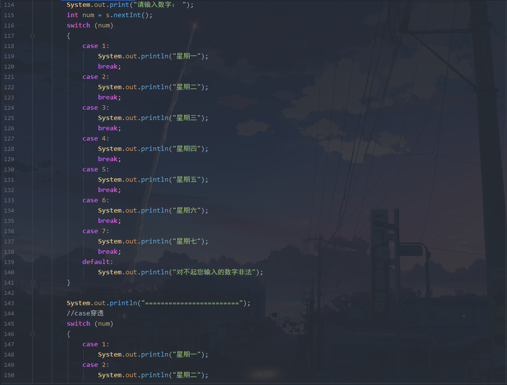 switch(a)//每个case后面一定要有break,否则会连下面的一起执行