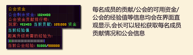 后续还会有更多更新 敬请期待! 嗯?有些功能没有做? 例如成员召集 传送过来的功能 例如成员经验共享 例如会长在周围时的加成 这些功能做起来 怎么说呢 不是难 就是不方便管理 比如成员召集 可能就会出现跨等级召唤成员进行副本等情况 方便管理 这些功能就全部没有制作了 还望理解~ |