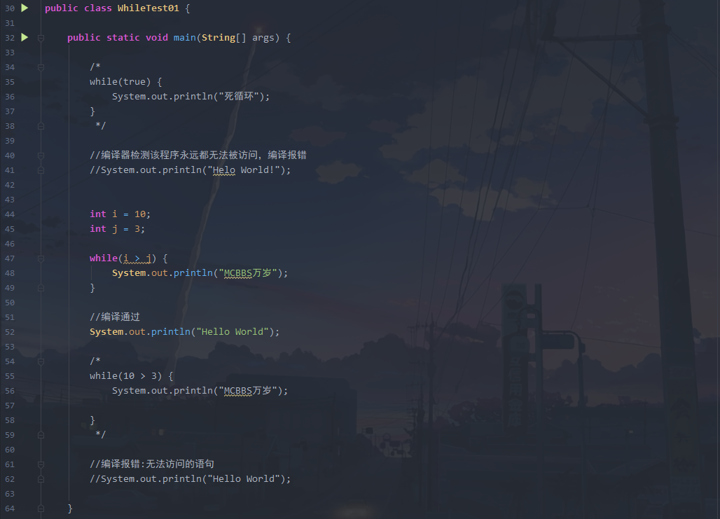 - //编译报错:无法访问的语句